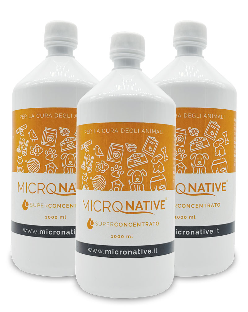 3 Bottiglie da 1 litro di MicroNative per la cura degli animali